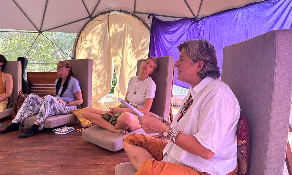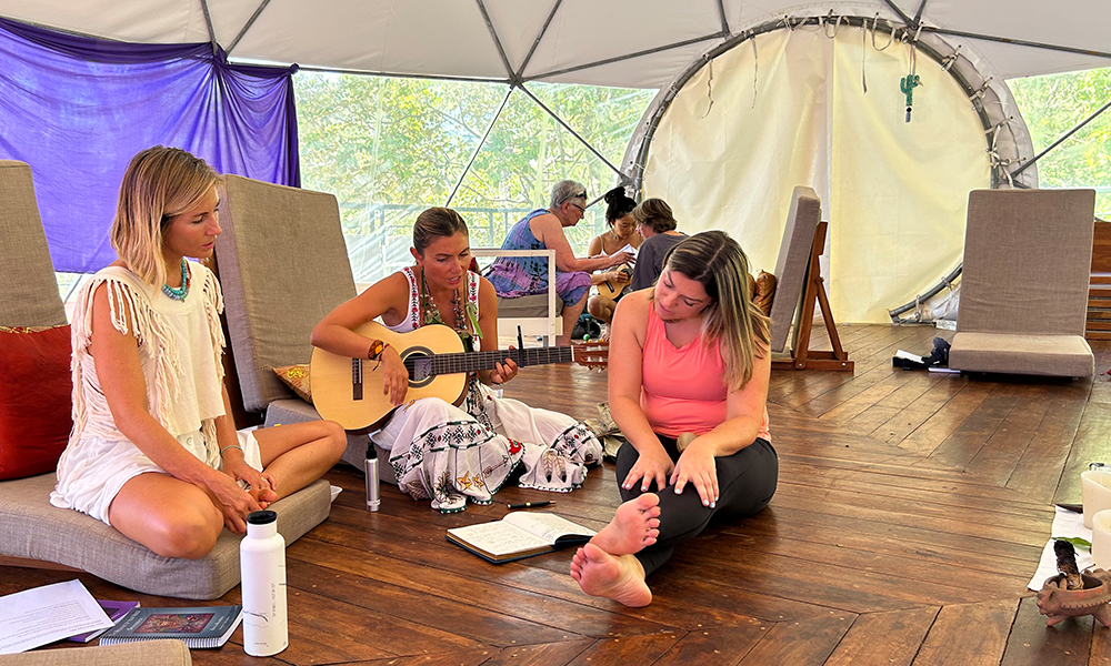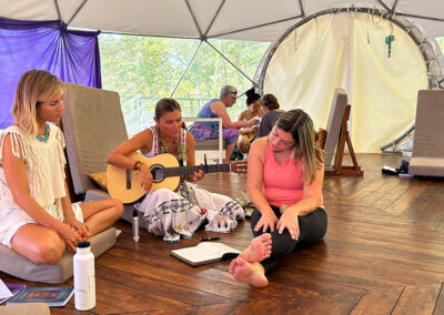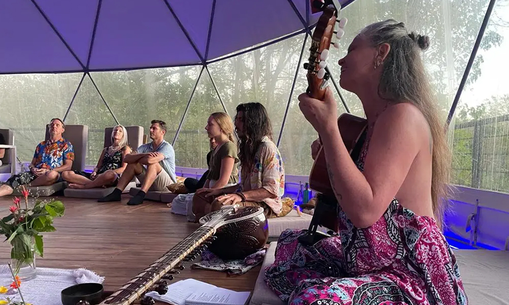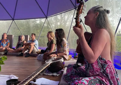 Voice and breathwork practices: including techniques grounded in the Indian musical scale (Sargam), to deepen awareness and cultivate resonance.